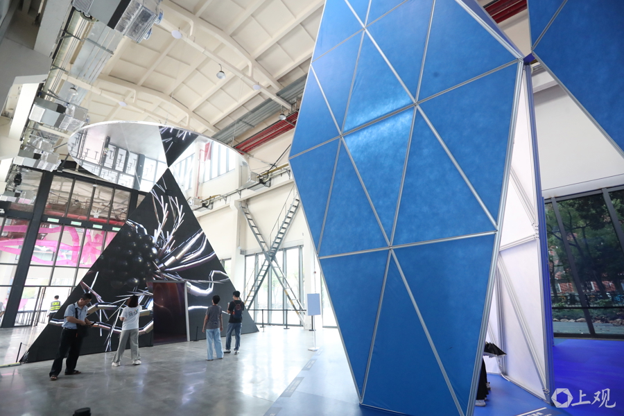 国庆长假,上海城市空间艺术季主展区复兴岛船台公园人头攒动,出于对量子城市的好奇,人们走进复兴云厅参与各种量子游戏,畅想心中的未来城市。